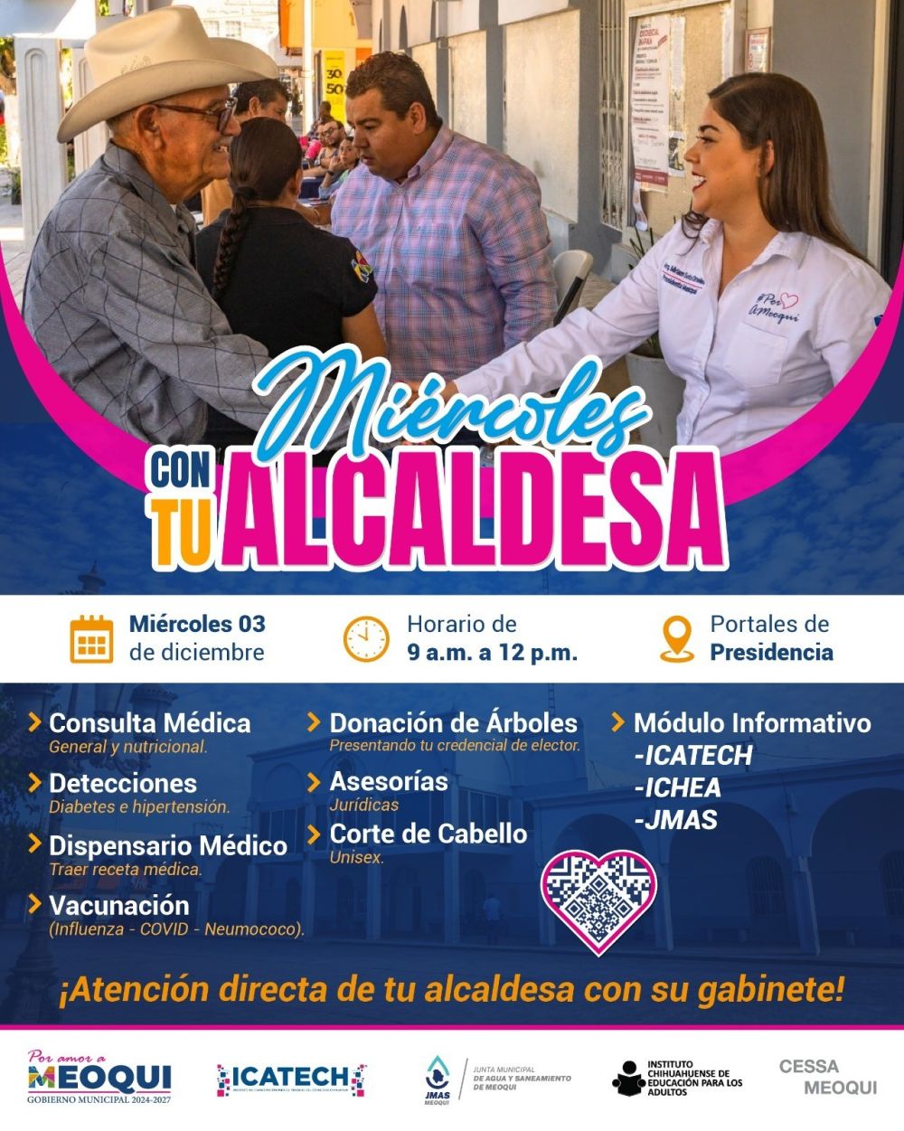 “Invitamos a todos a que asistan este miércoles a los portales de Presidencia. Es un espacio donde nuestra alcaldesa escucha y atiende de manera directa cualquier tipo de solicitud o problemática”, mencionó el director, recordando que la atención es sin cita previa, para escuchar peticiones, resolver problemáticas y brindar orientación sobre los diferentes servicios y programas del Gobierno Municipal.