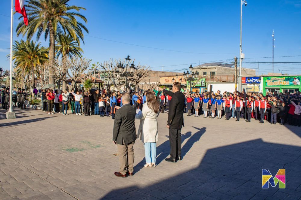 Acompañada por 300 alumnos de tercer grado de primaria, la alcaldesa Miriam Soto encabezó el Juramento a la Bandera en el marco del Día Nacional de la Bandera, en la explanada de la Presidencia Municipal. Durante el evento se llevó a cabo el izamiento del Lábaro Patrio, con la participación de diversas escuelas del municipio, a las cuales se les entregó un reconocimiento por su participación.