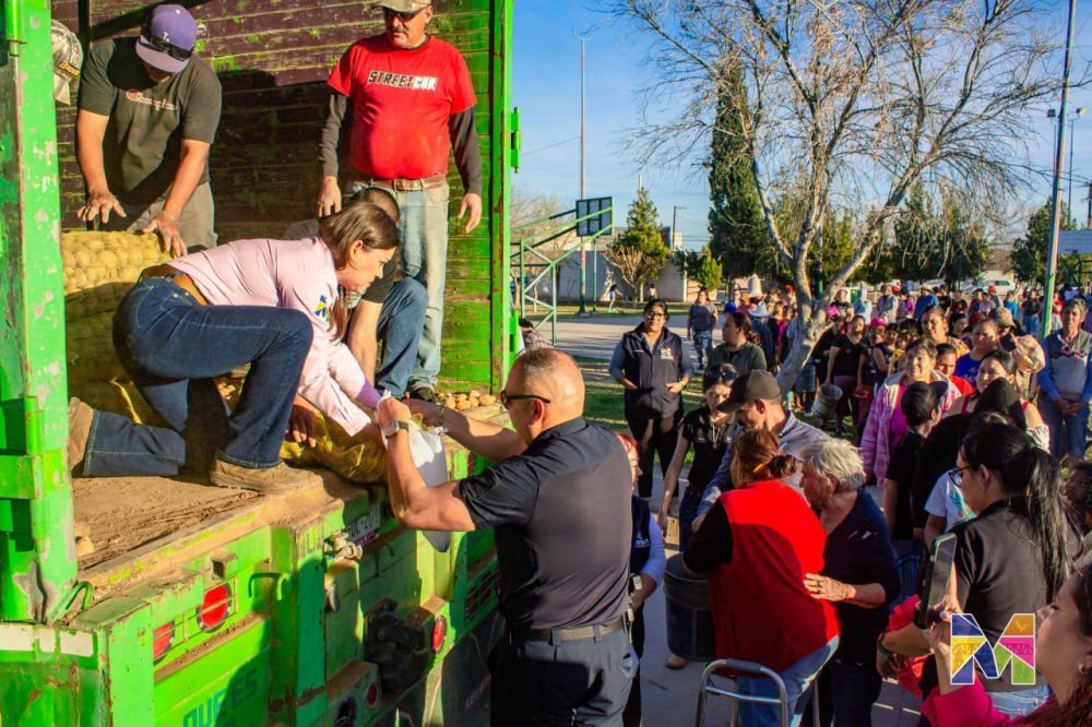En apoyo a la economía de las familias meoquenses, el Gobierno Municipal lleva a cabo un programa de apoyos alimentarios, beneficiando a más de 400 familias en la cabecera municipal en una primera entrega, encabezada por la alcaldesa Miriam Soto en el Parque de La Amistad, donde se distribuyeron 20 toneladas de papa sin costo alguno, además de ofrecer frijol y huevo a precios más accesibles que los del mercado, este programa contempla la entrega de 70 toneladas de papa en todo el municipio.