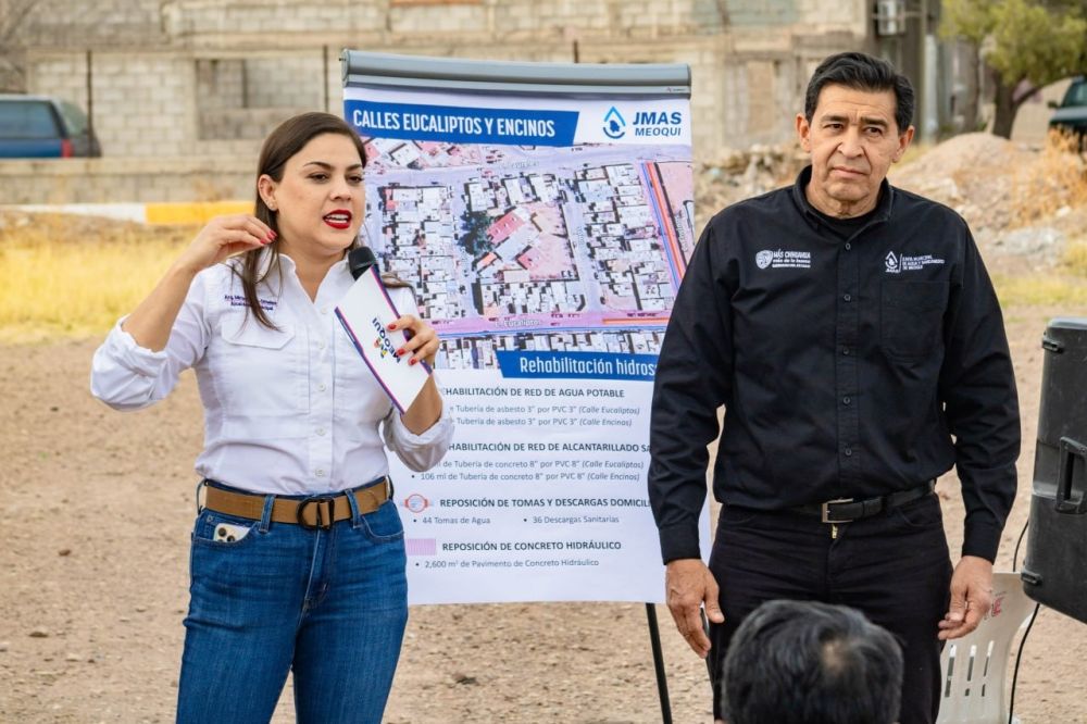 El Gobierno Municipal de Meoqui, en coordinación con la Junta Municipal de Agua y Saneamiento, anunció la repavimentación de las calles Eucalipto y Encinos, ubicadas en la colonia Villas San Pedro, obra que incluirá además la reposición de las redes de agua potable y drenaje, con una inversión cercana a los 5 millones de pesos por parte de la Junta.