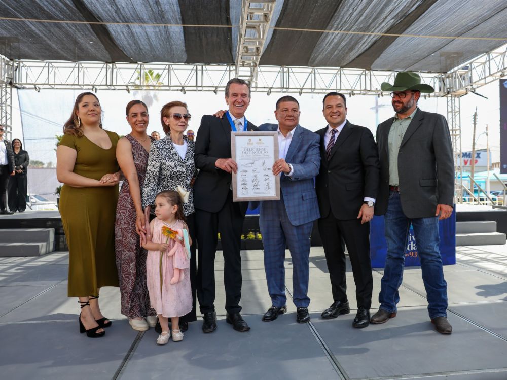 En el punto donde inició el trazo original de la ciudad se llevó a cabo el evento cívico con motivo del 93 aniversario de Delicias, ceremonia encabezada por el presidente municipal Jesús Valenciano García y el fiscal general del estado César Jáuregui Moreno, quienes entregaron la Medalla al Mérito Ciudadano Fundadores 2026 al Óscar Villalobos Chávez por su trayectoria y aportaciones a la comunidad.