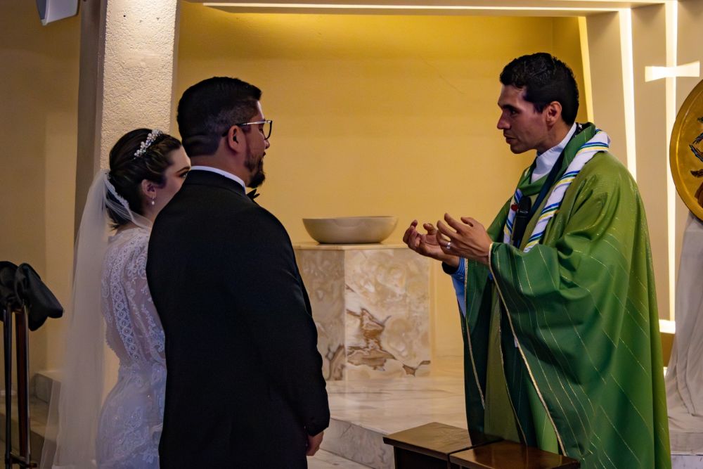 En la capital del estado se lleva a cabo la ceremonia del enlace matrimonial de Brnda Nájera Haro y Kevin Arnoldo Rodríguez Domínguez, jurándose amor eterno ante el presbítero que ofició la Misa, los padres de la pareja, invitados y sobre todo ante Dios y la Virgen de Guadalupe.
