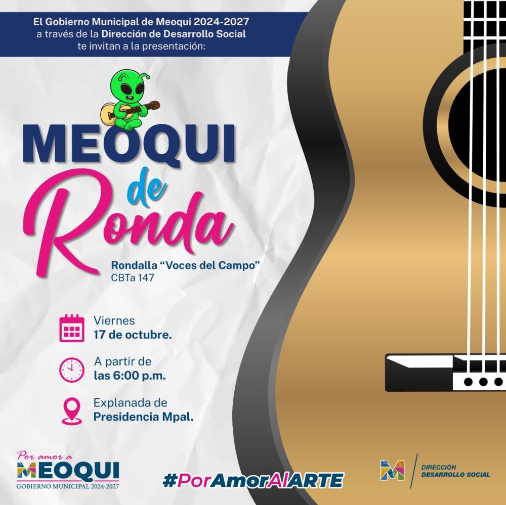 La Rondalla Voces del Campo del CBTa 147 encabezará una nueva edición del programa “Por Amor al Arte” este próximo viernes 17 de octubre a partir de las 6 de la tarde en la explanada de la Presidencia Municipal, en donde deleitarán a las familias de Meoqui con baladas como Gema, Amor Eterno y Cristo Viejo.