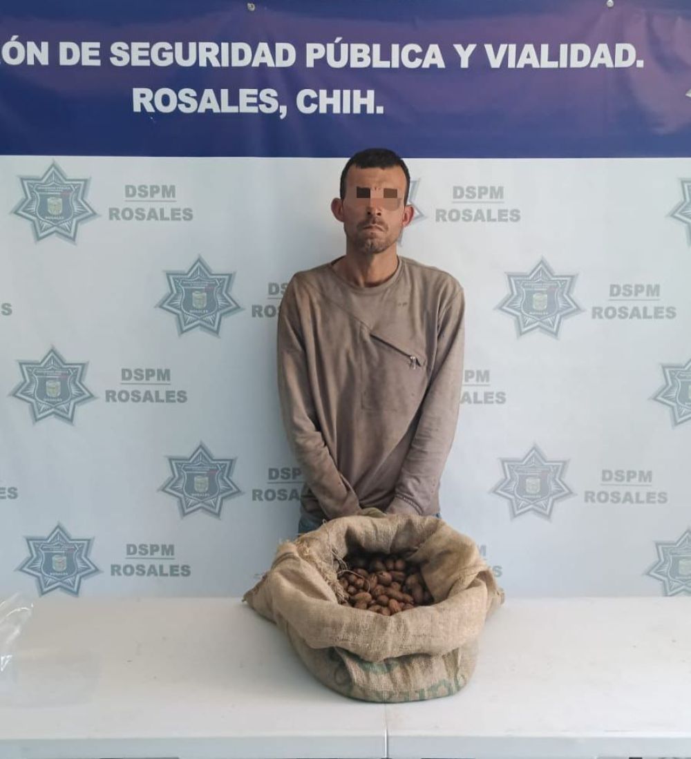 Durante los recorridos de vigilancia que se realizan dentro del Operativo de Cosecha de Alto Valor 2025, la Unidad de Investigación Policial de la Dirección de Seguridad Pública Municipal de Rosales aseguraron el día de hoy a un masculino que llevaba consigo aproximadamente 20 kilogramos de nuez sustraída de una huerta en la comunidad de Orinda.