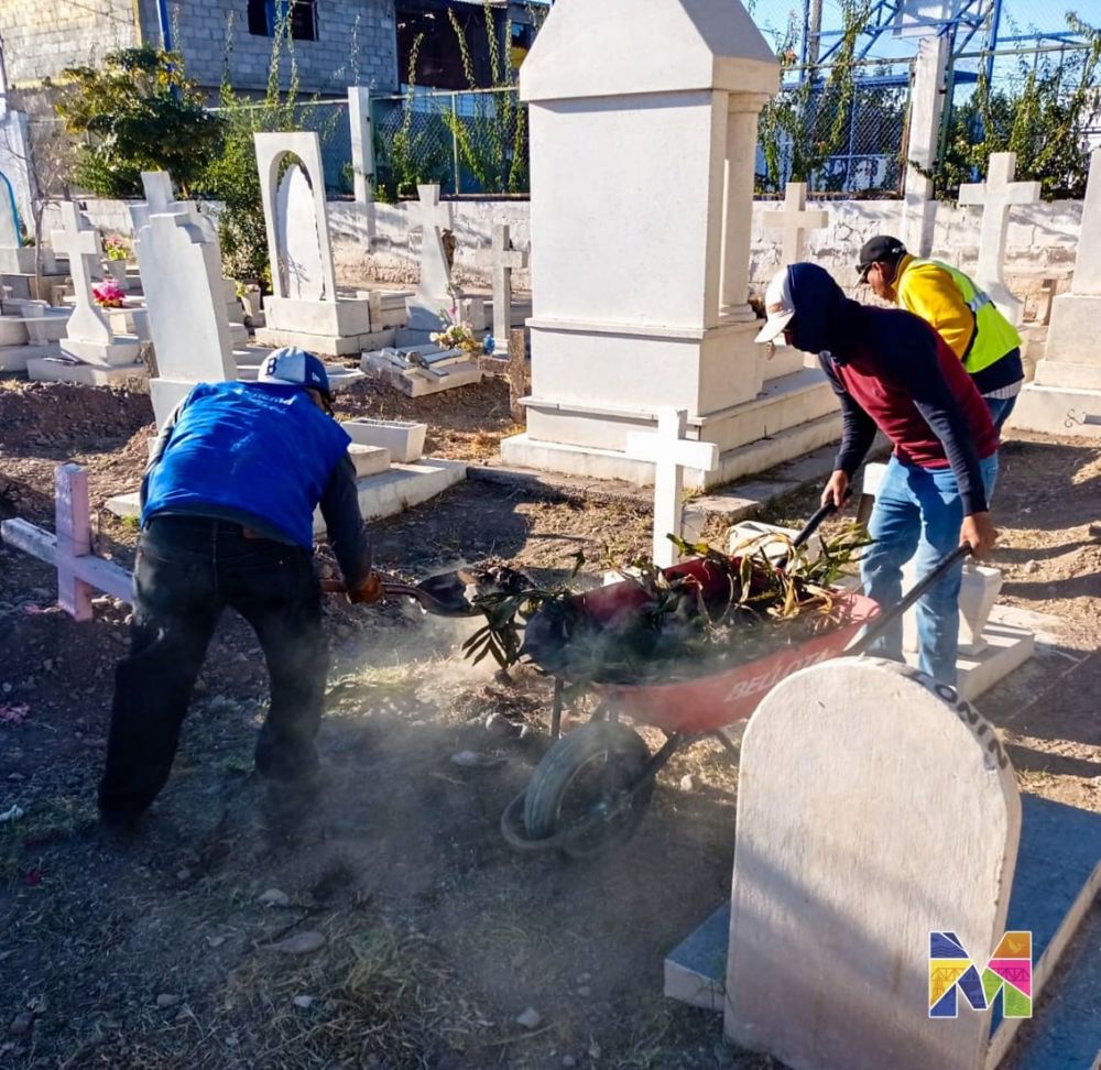 “Estamos afinando algunos detalles de limpieza y retiro de escombros y hierba en los panteones municipales, tanto en el de cabecera como en el de Los Jáquez. Confiamos en que para este miércoles ya tendremos todo listo en las áreas internas y externas del panteón”, mencionó Noé Legarreta, director de Servicios Públicos Municipales, quien además dio a conocer que el personal del área trabajará durante el fin de semana, de sábado a domingo hasta las 8 de la noche, brindando apoyo a las familias para retirar excedentes o materiales que se generen por la limpieza o colocación de flores.