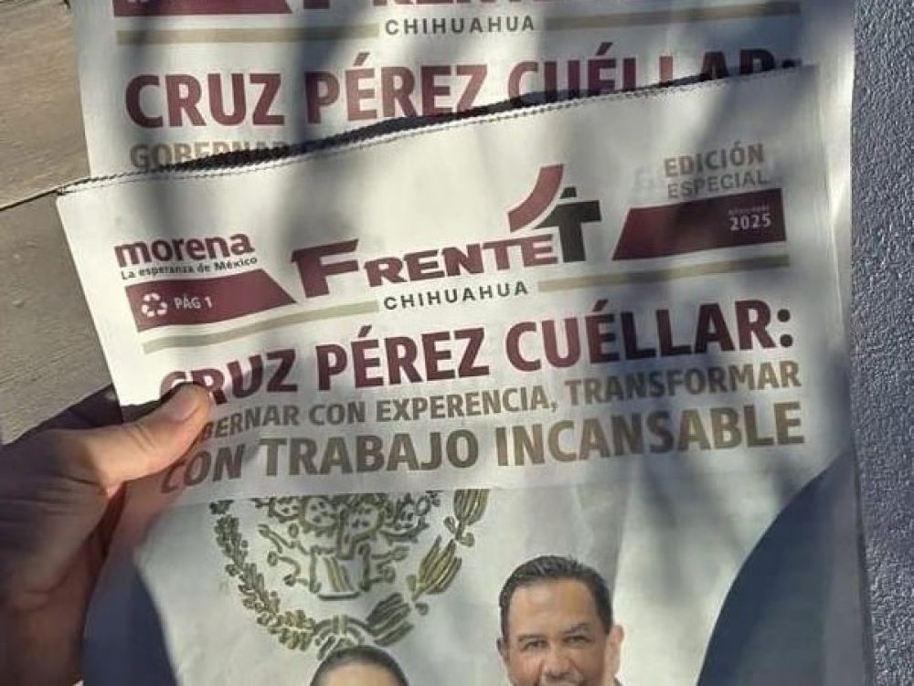 Los ejemplares están siendo distribuidos de manera masiva en colonias de Chihuahua capital, como en el Cerro de la Cruz, Los Pinos, entre otras más, donde brigadas de Morena, “debidamente uniformados”, entregan el material con el objetivo de influir en las preferencias electorales.