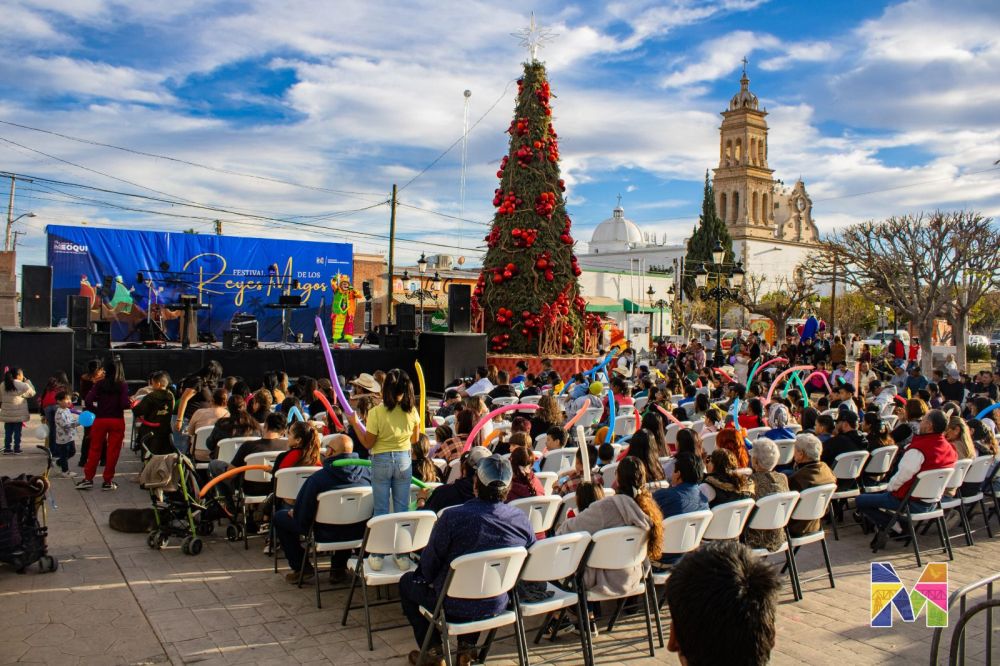 En un ambiente de alegría, tradición y unión familiar, la alcaldesa de Meoqui, Miriam Soto, encabezó la celebración del Día de Reyes Magos en la Plaza Principal, donde cientos de familias se dieron cita para disfrutar de una tarde llena de sorpresas y convivencia con el show del payaso Bombín, la mega rosca de 50 metros, además de dulces, regalos y la presencia de los Reyes Magos, así como también el tradicional Domingo de Serenata.