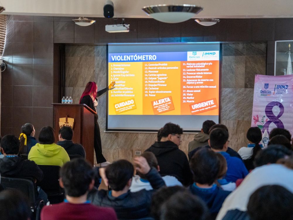 Asimismo, el Instituto llevó a cabo la conferencia “Poder estar unidas” en el plantel CEUN, donde también se entregaron botones simbólicos con el propósito de promover un mensaje de sororidad y conciencia colectiva. La directora destacó que la intención es reforzar la idea de una unión basada en el respeto, la colaboración y la construcción de una sociedad más equitativa.