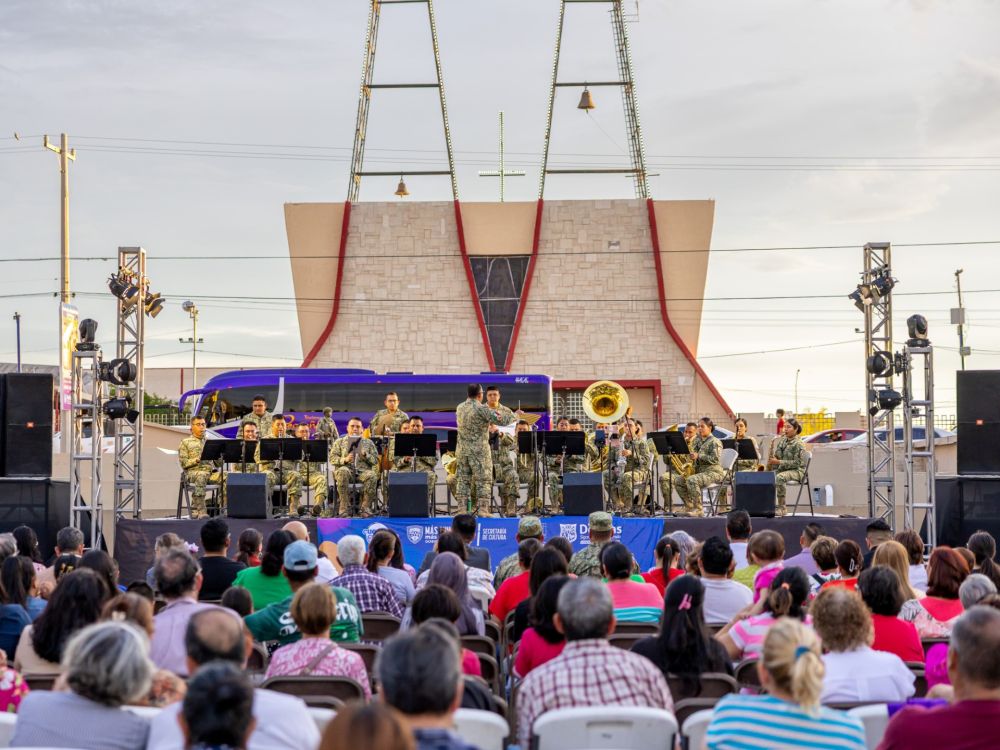 Con una destacada y cálida participación ciudadana, se llevó a cabo la presentación de la Banda de Música de la XI Región Militar como parte del Festival de la Fundación, en la Plaza del Santuario. El evento reunió a familias enteras en un ambiente festivo, donde niños, jóvenes y adultos disfrutaron de la música, bailaron y corearon algunas de las piezas interpretadas.
